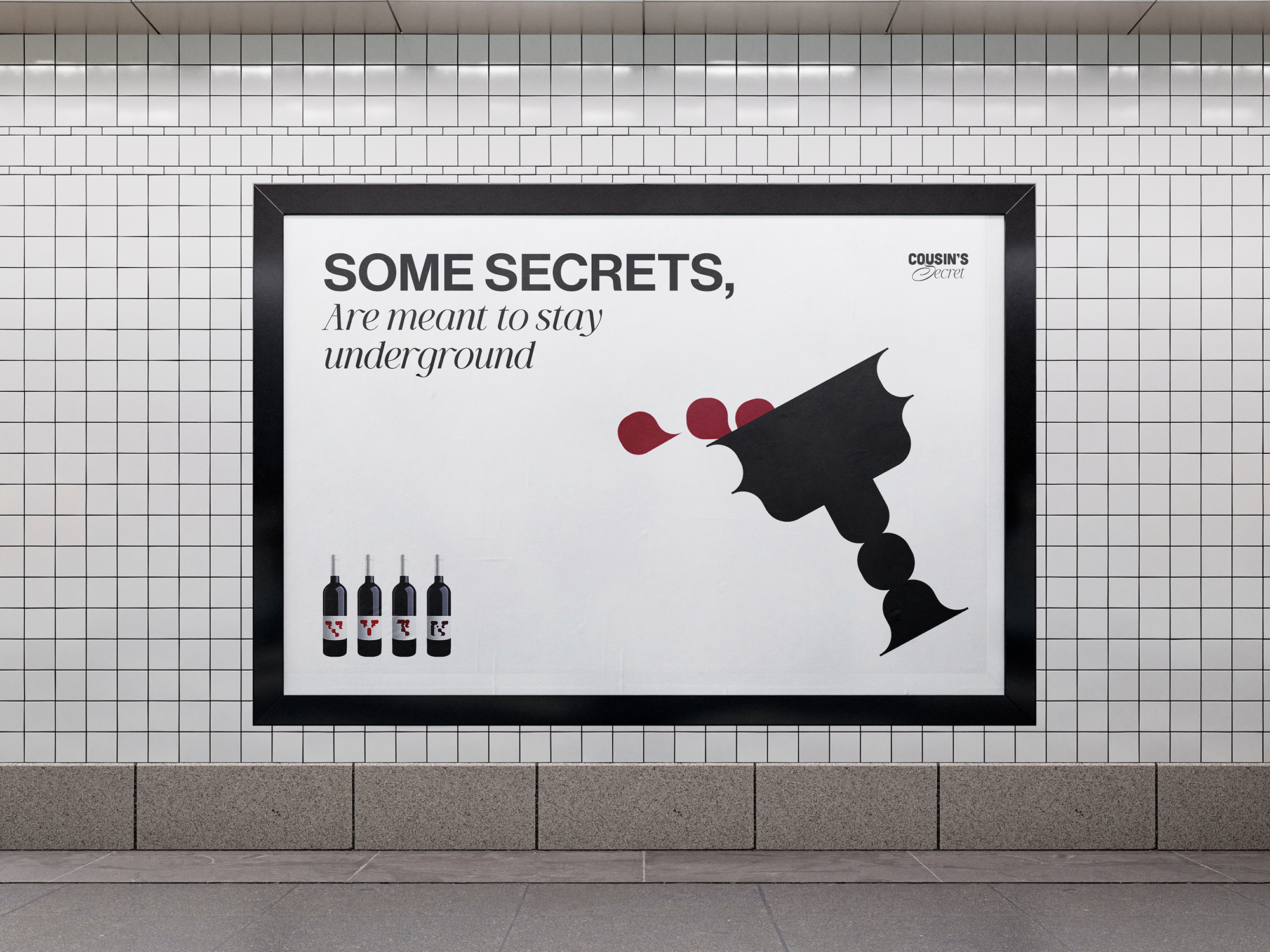 Cousin’s Secret is a playful wine brand from the Barossa Valley, created by two sets of cousins. Blending mystery with tradition, it speaks to young, social drinkers who value creativity and storytelling. Inspired by vintage Italian design, the brand uses bold shapes and hidden details to reveal its secrets, inviting people to be part of the story.